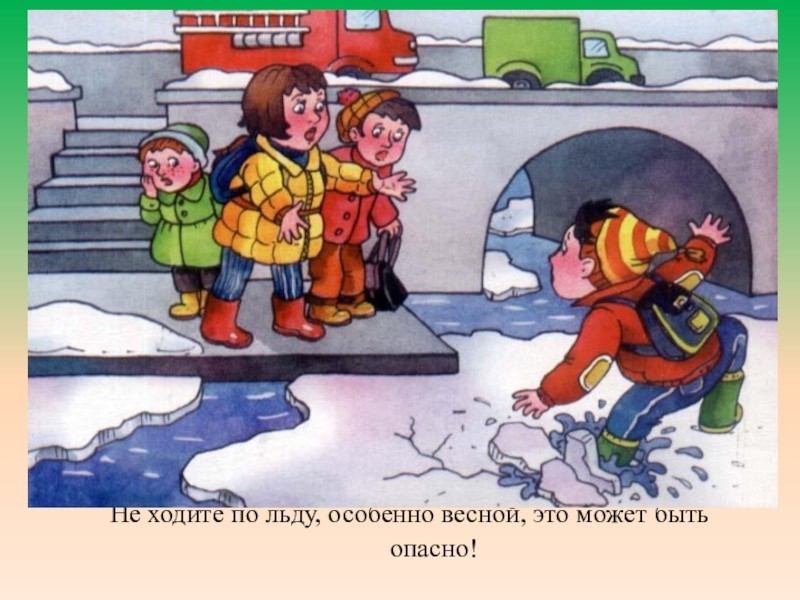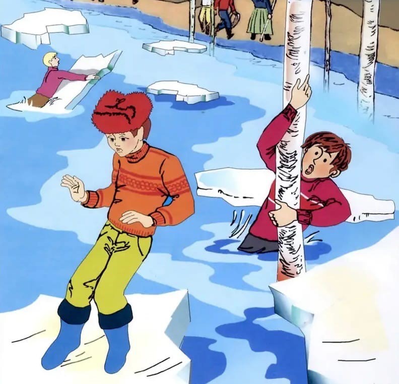 Помните, что весенний лед – капкан для вступившего на него! Особенно недопустимы игры на льду в период вскрытия рек. Прыгать с льдины на льдину, удаляться от берега очень опасно. Во время половодья и ледохода опасно находиться на крутом, обрывистом берегу, так как быстрое течение воды подмывает и рушит его, возможны обвалы. Остерегайтесь любоваться весенним ледоходом с обрывистых берегов. Весной опасно сходить за плотины, запруды. Они могут быть неожиданно сорваны напором льда. Не приближайтесь к ледяным заторам.