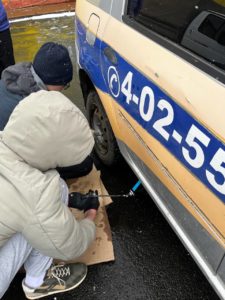 «Устройство автомобиля», где ребятам предстояло выполнить задание по замене колеса (для юношей) и ежедневному осмотру транспортного средства (для девушек).
